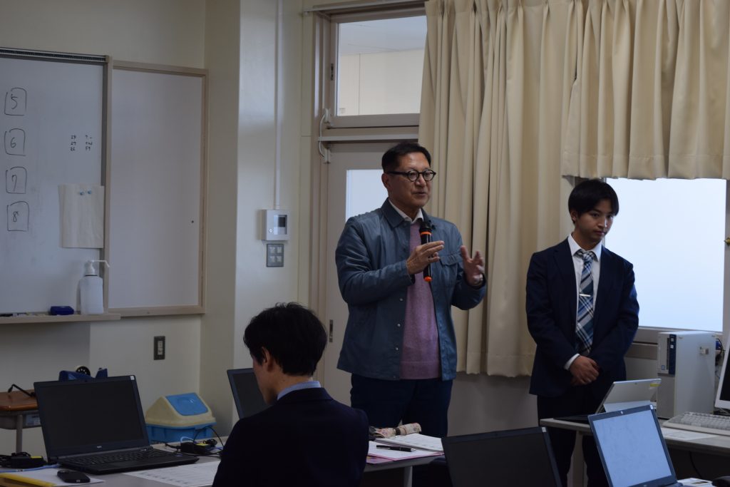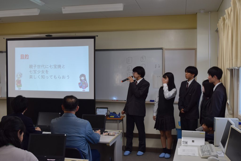 今回の成果発表は、10月から継続してご指導いただいている名古屋学院大学の古池嘉和先生、小竹佑典先生、七宝焼アートヴィレッジの内山館長にご参観いただき、それぞれの目線からご指導・アドバイスをいただきました。