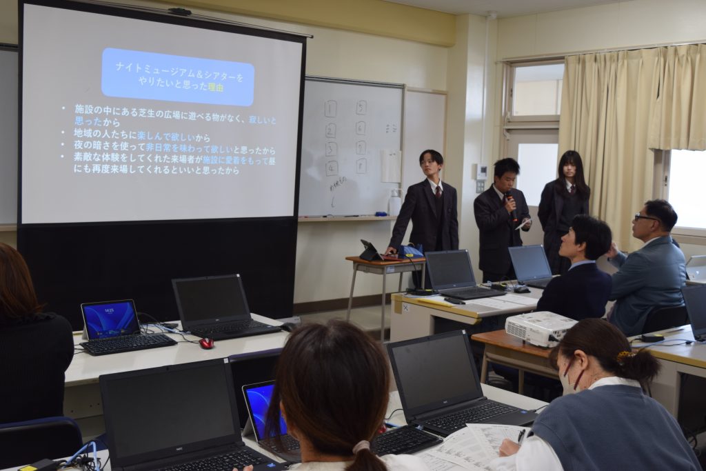もう少し現状調査の必要がある提案もありましたが、1学期と比較すると格段に見やすいスライドを作成することができており、聞きやすい声量で堂々とプレゼンテーションを行える生徒が増えてきました。「情報の収集」の改善に力を入れつつ、引き続き様々な分野の地域課題を探究していきたいと思います。