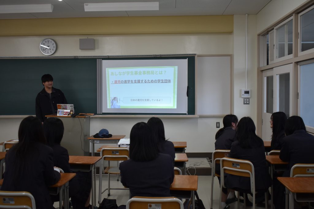 お知らせ/地域活動/学校生活/部活動 【地域活動部】あしなが学生募金事務局東海北陸エリアより出前授業をしていただきました 2026年4月21日 あしなが学生募金事務局東海北陸エリアから大学生2人が美和高校に来校していただき、出前授業をしていただきました。 募金の目的、成果と課題などをクイズやグループ活動を取り入れ、楽しくわかりやすく教えていただきました。美和高校として、募金活動を今後より一層頑張っていきます。 貴重な授業をありがとうございました。